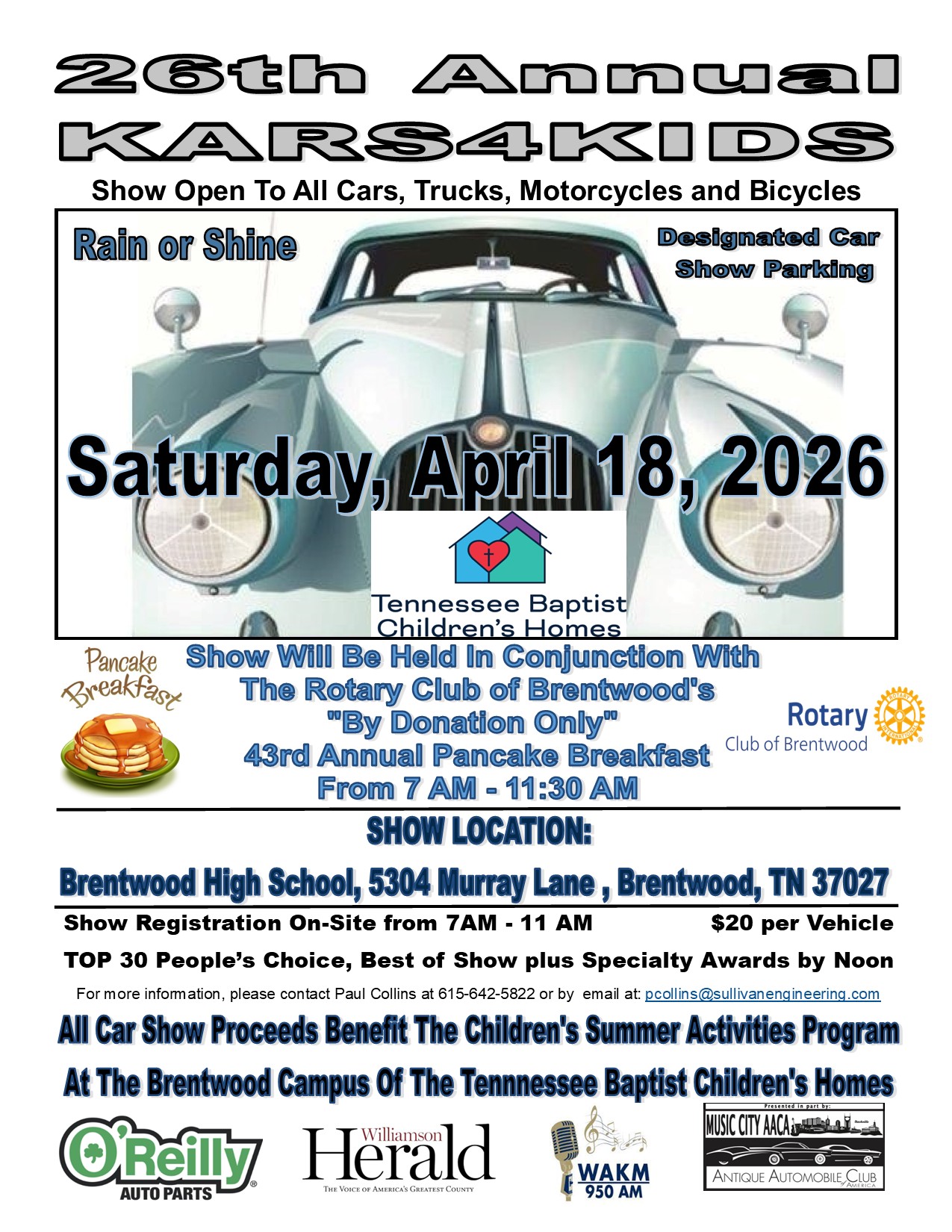 Event is presented by The Brentwood Rotary Club and the Music City Antique Automobile Club of America (AACA),