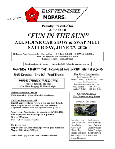 Fun in the Sun Show – June 27, 2026 – Knoxville, TN